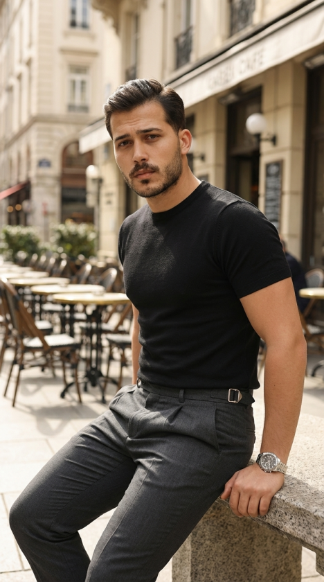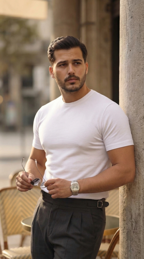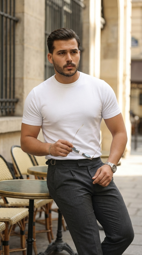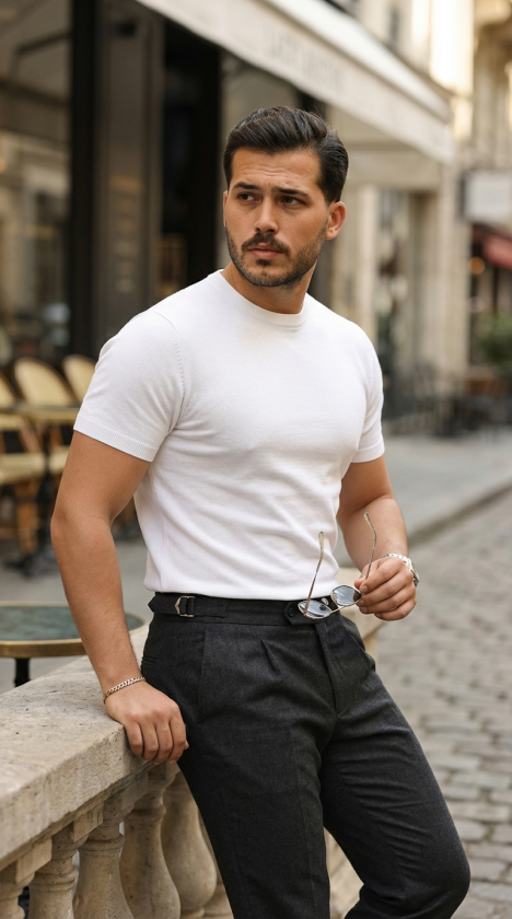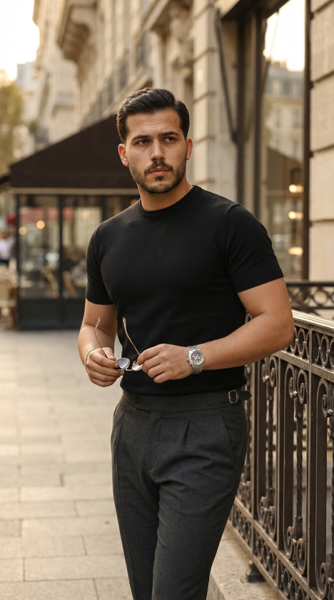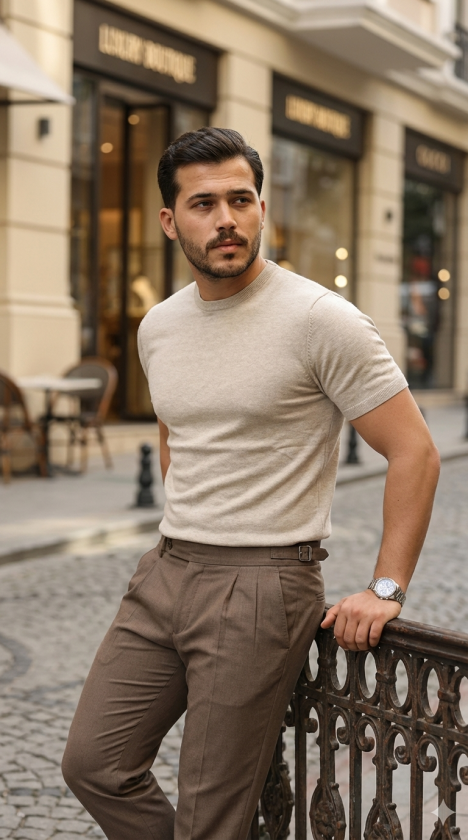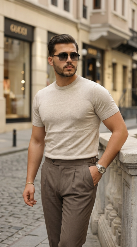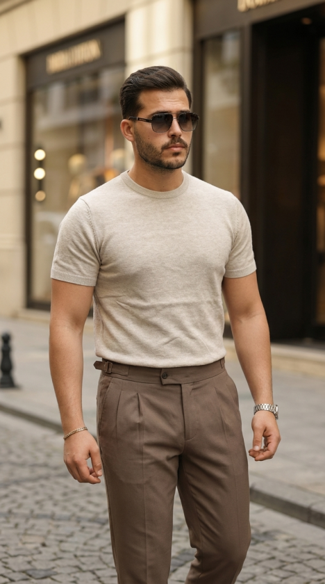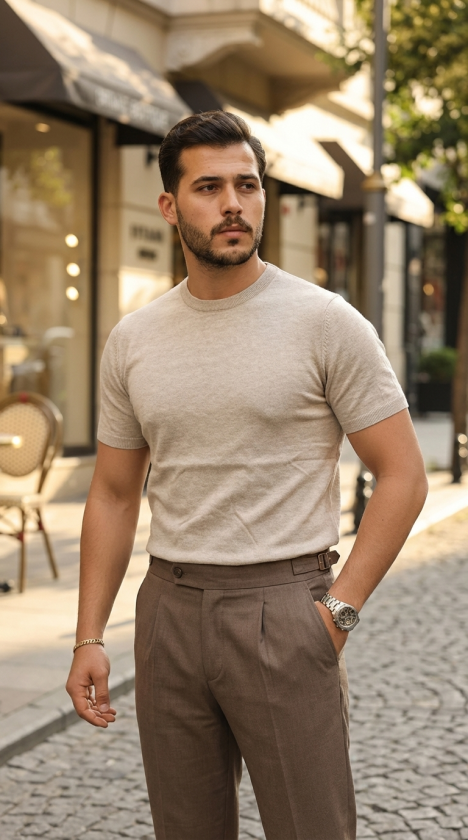 Erkek Basic Bisiklet Yaka Kısa Kollu Triko Tişört – %100 Pamuk Akrilik
