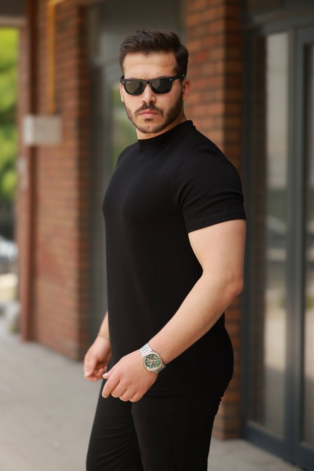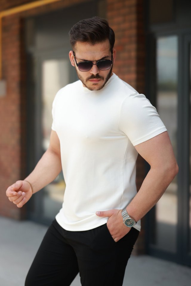 Erkek Omuzlar çizgi Detaylı Kısa Kollu T-shirt