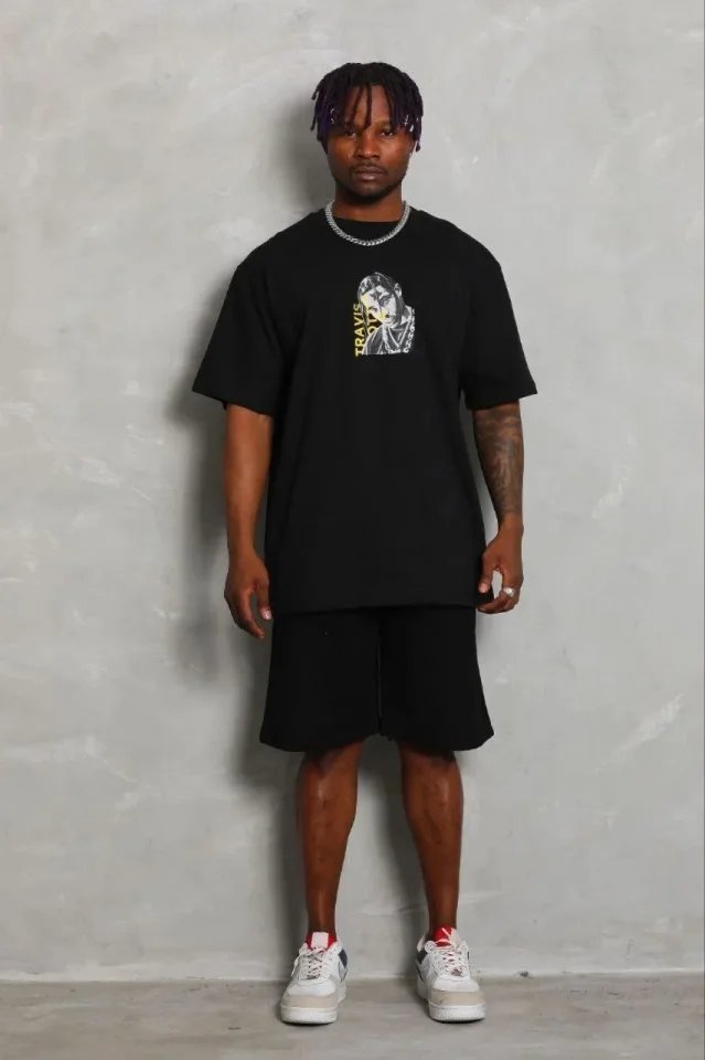 Erkek Baskılı T-Shirt Kısa Kol Bisiklet Yaka Regular Fit Rahat Kalıp Günlük Tişört – Siyah
