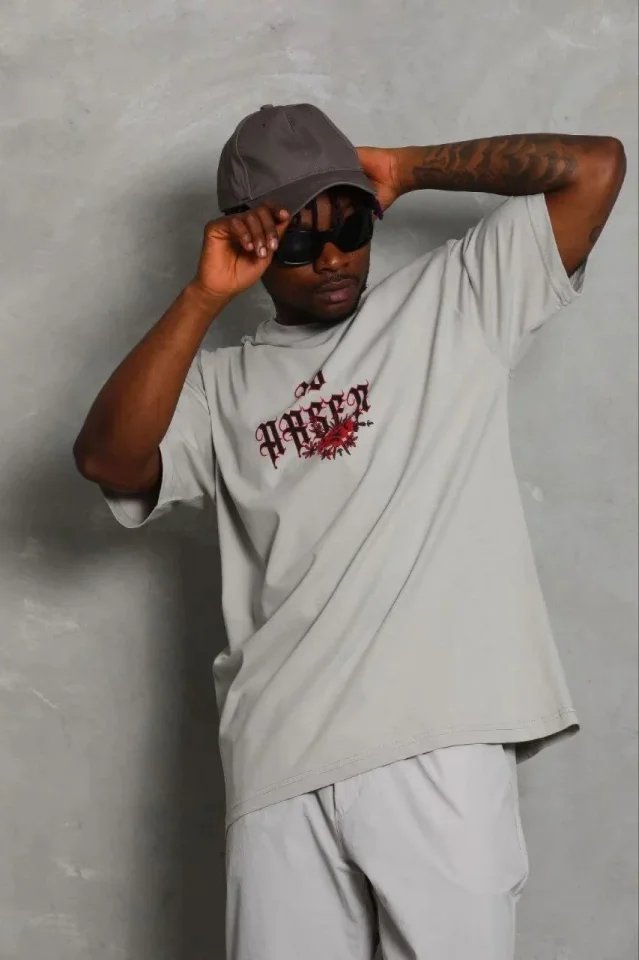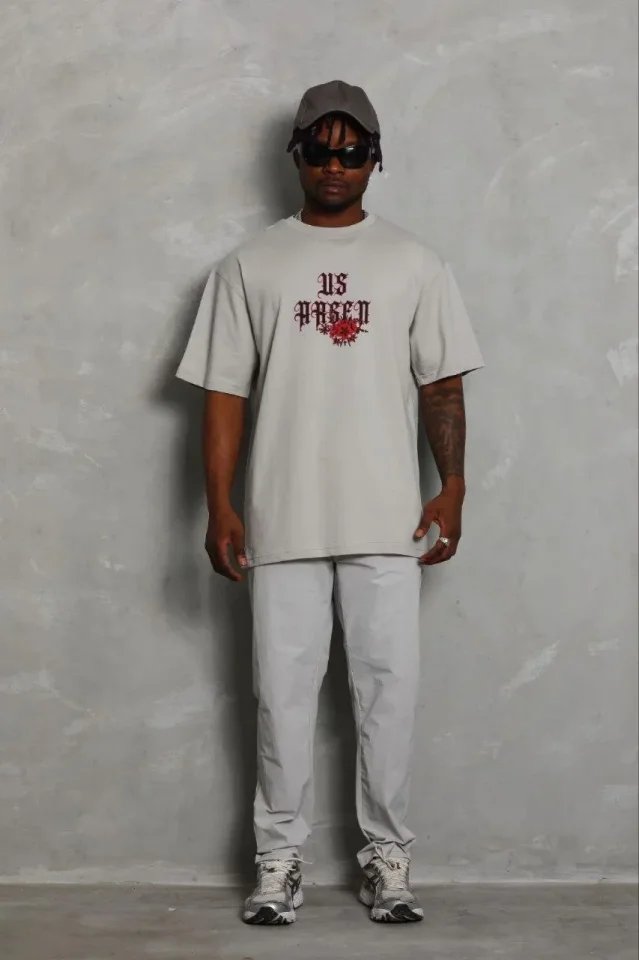 Erkek Baskılı T-Shirt Kısa Kol Bisiklet Yaka Regular Fit Rahat Kalıp Günlük Tişört – Gri