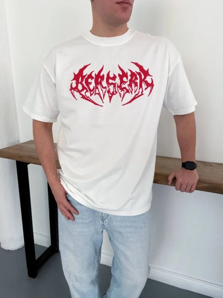 Erkek Baskılı T-Shirt Yazlık Kısa Kol Bisiklet Yaka Rahat Kalıp Tişört – Beyaz