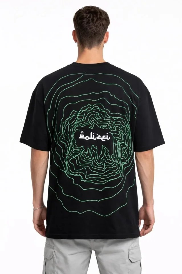 Erkek Bisiklet Yaka Baskılı Kısa Kollu Tişört Streetwear Günlük Basic Pamuklu T-shirt – Siyah