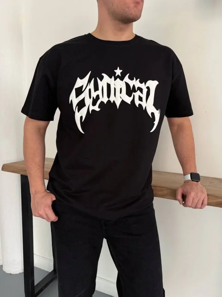 Erkek Bisiklet Yaka Ön Baskılı Kısa Kollu Tişört Streetwear Günlük Basic Pamuklu T-shirt – Siyah