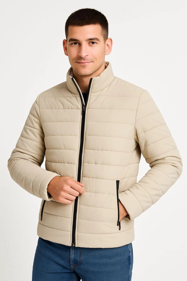 Erkek Bomber Mont Ceket – Su İtici Kumaş, Kapitone Astarlı, Fermuarlı, Kışlık – Bej