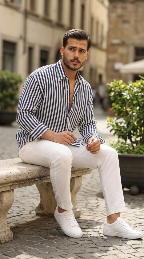Erkek Dikey Çizgili Yarım Oversize Gömlek