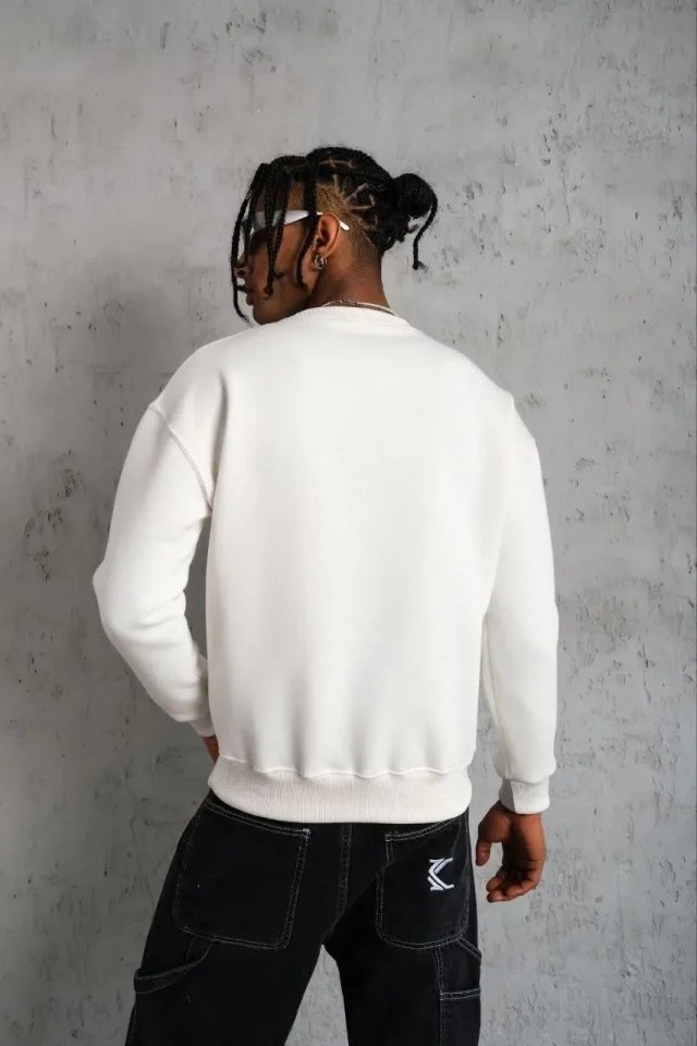 Erkek Düz Bisiklet Yaka Sweat – Beyaz