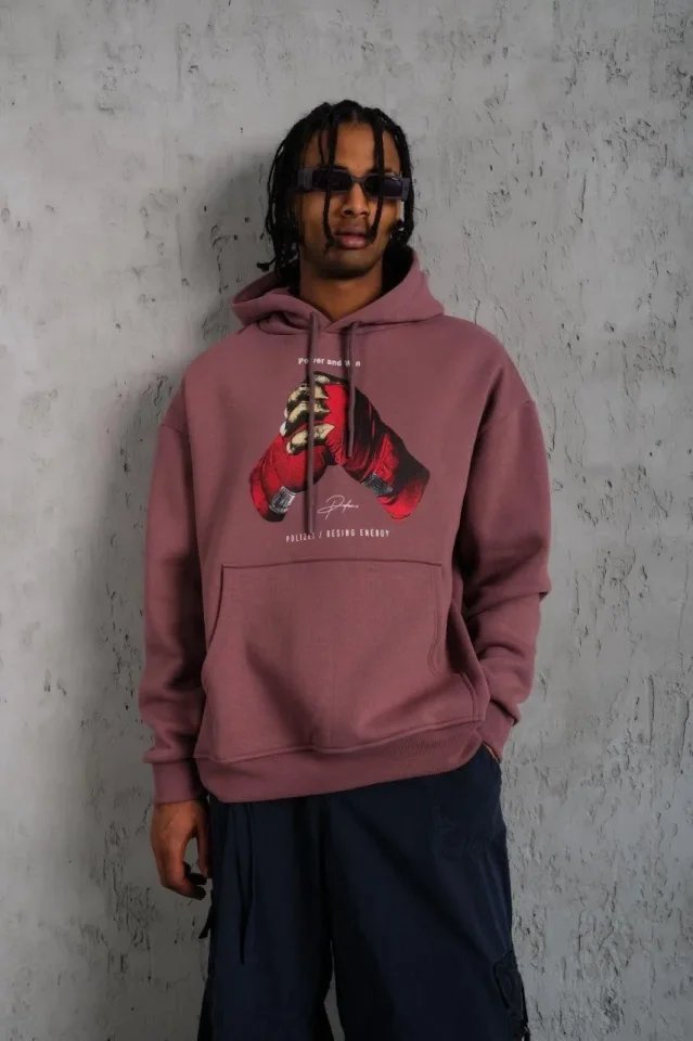 Erkek Eldiven Baskılı Kapüşonlu Sweat – Gül Kurusu