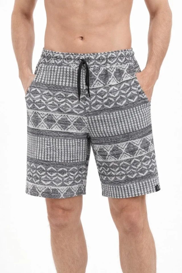 Erkek Etnik Desenli Dokuma Şort Lastikli Bel Bağcıklı Cepli Yazlık – Gri