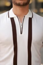 Erkek Göğüs Pirinç Desenli Fermuar Yakalı Kısa Kollu Tişört