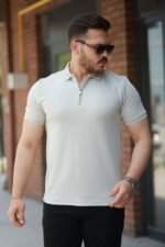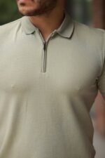 Erkek Fermuarlı Yaka Kısa Kollu Tişört