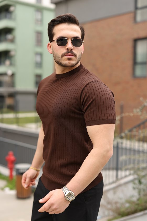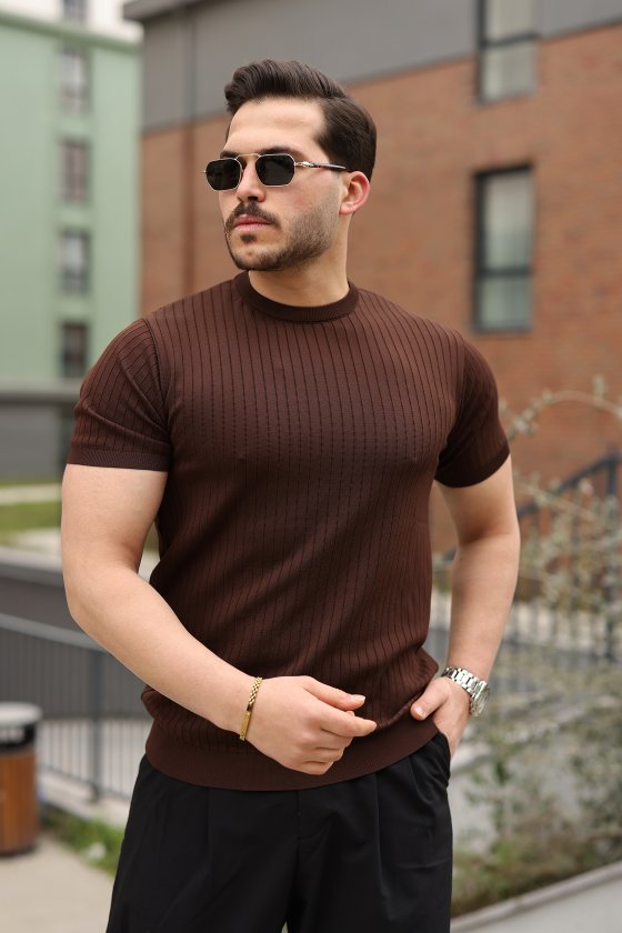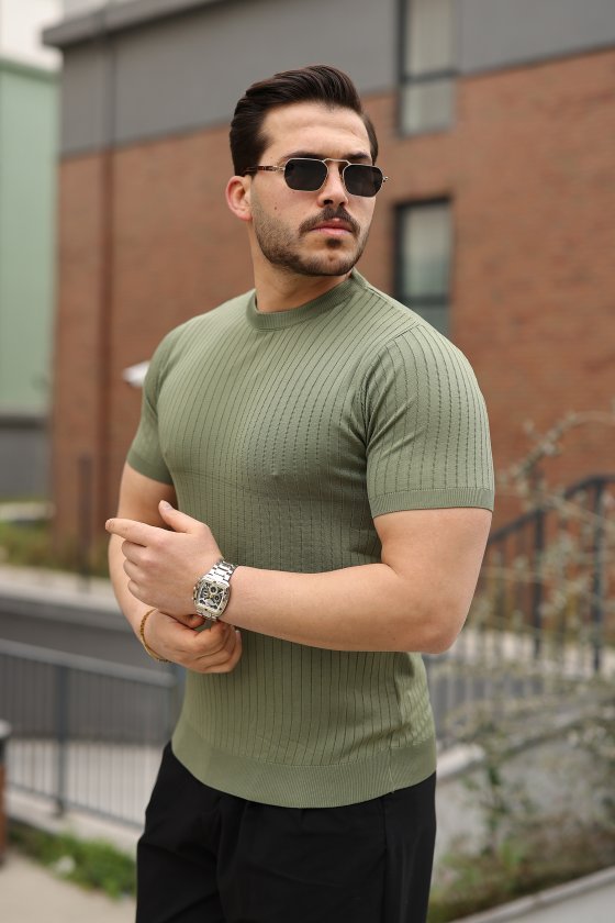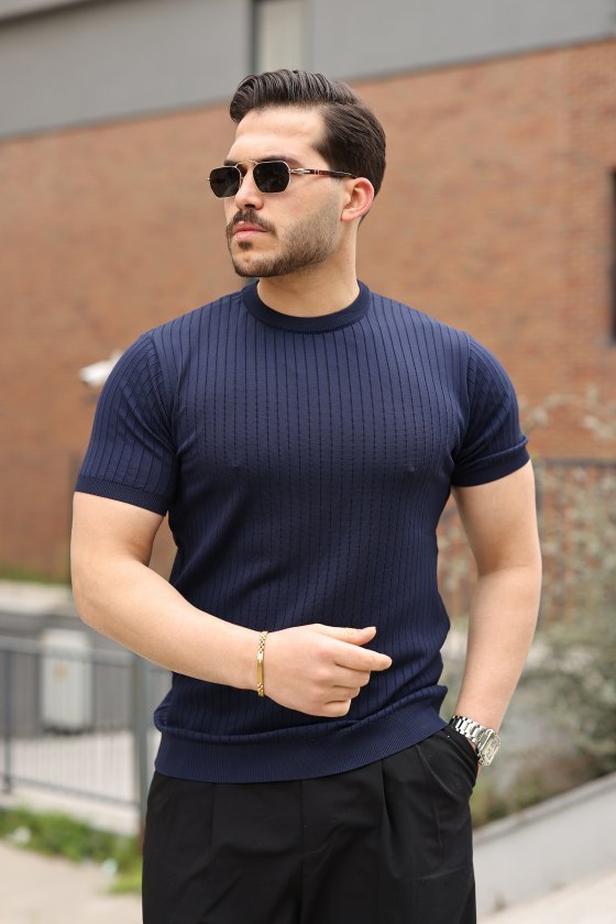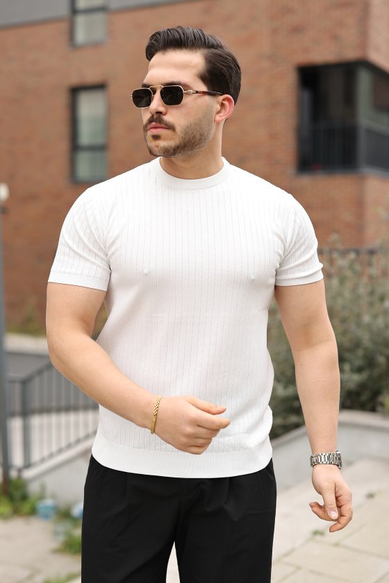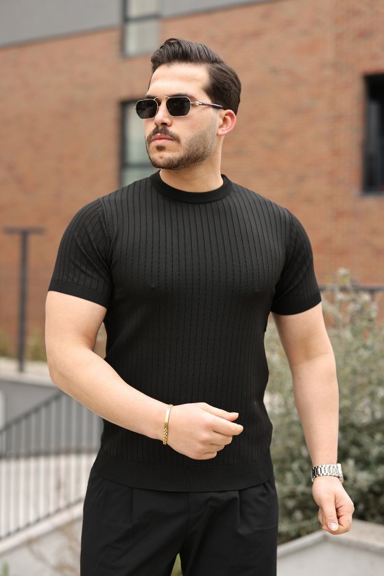 Erkek Ince çizgi Dokulu Kısa Kollu Tişört