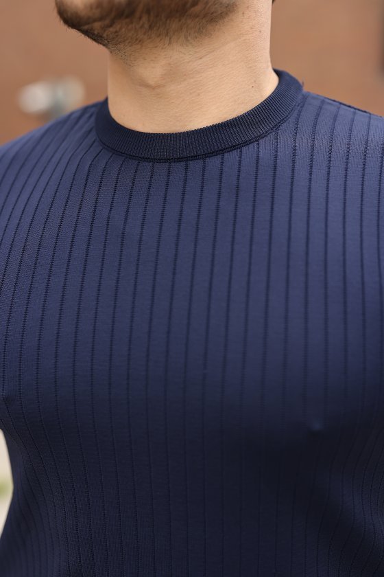 Erkek Fitilli Bisiklet Yaka Triko Tişört