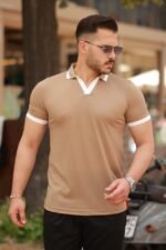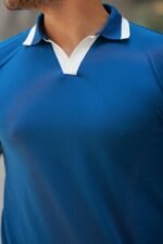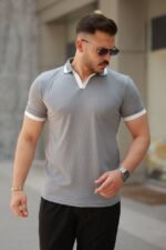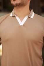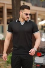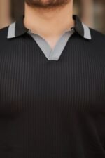 Erkek Yakalı Waffle Dokulu Kısa Kollu Tişört