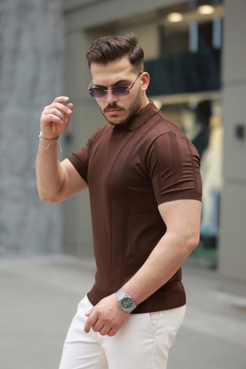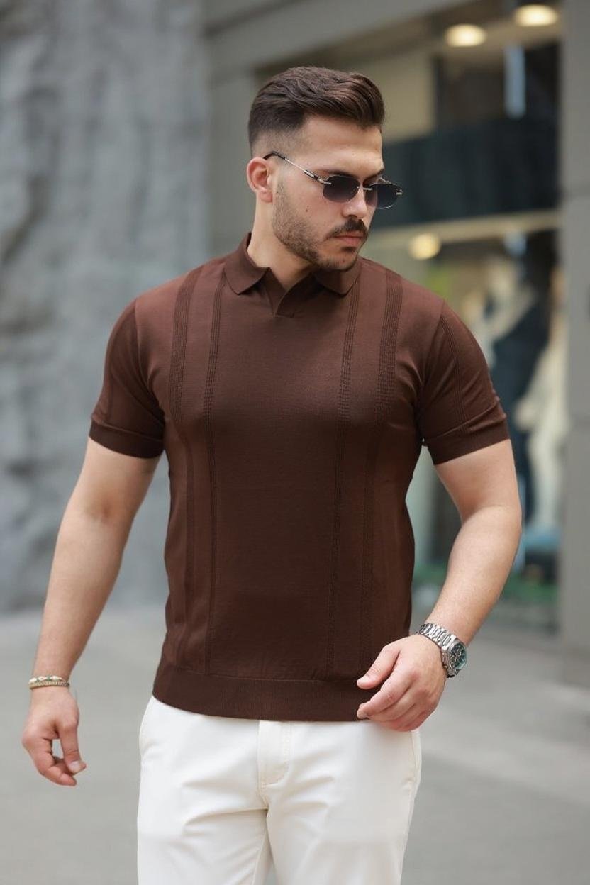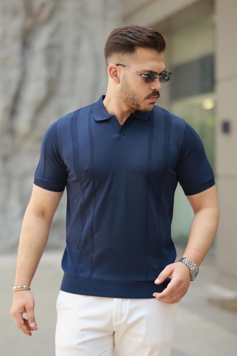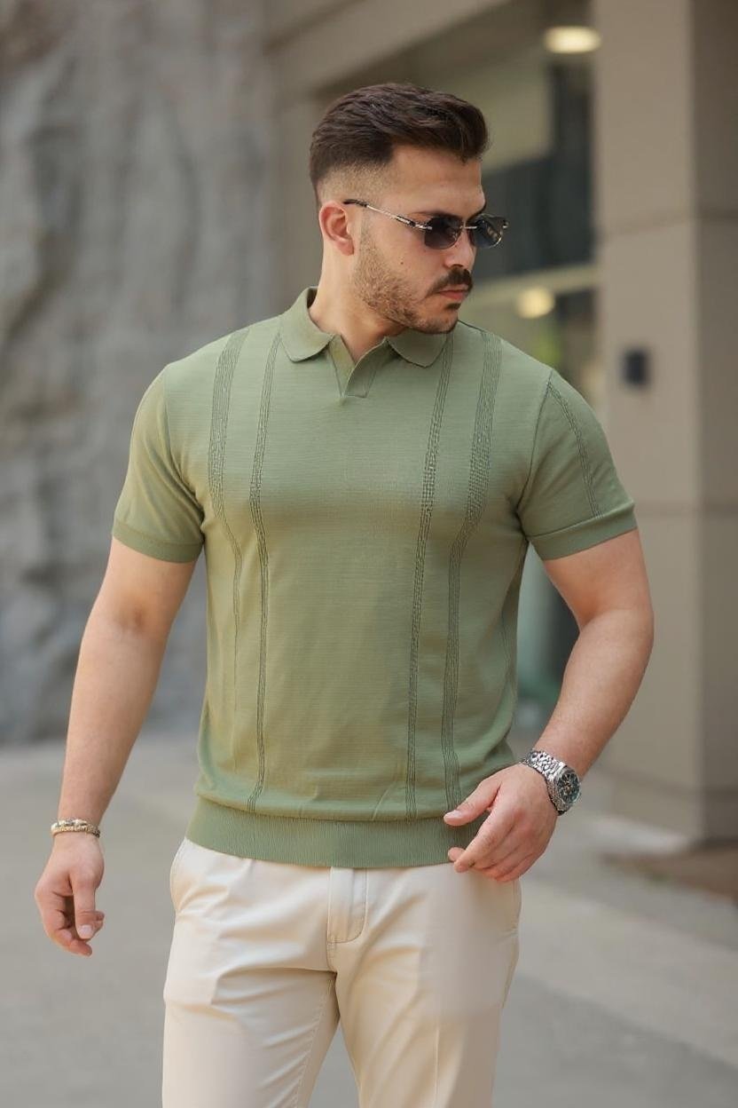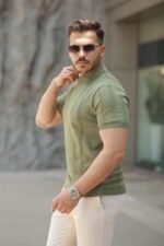 Erkek Fermuar Yakalı Kısa Kollu Tişört