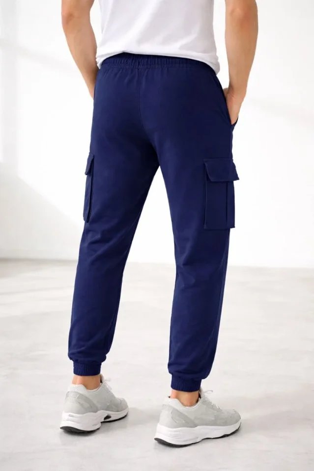 Erkek Jogger Eşofman Altı Regular Fit , Kargo Cepli, Lastikli Paça, Günlük Spor Pantolon – Lacivert