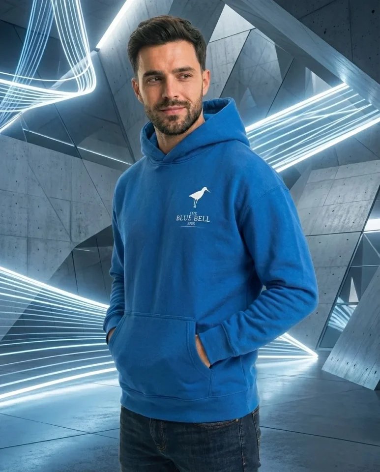 Erkek Kapüşonlu Double Oversize Üç İplik Pamuklu Deniz Yelken Baskılı Kanguru – Saks Mavisi