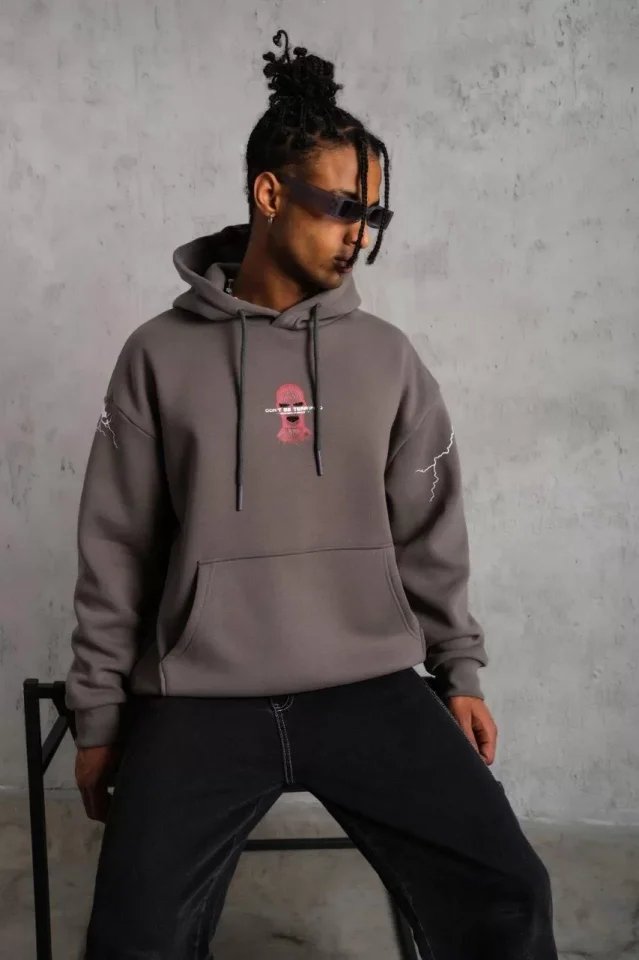 Erkek Maske Baskılı Kapüşonlu Sweat – Gri