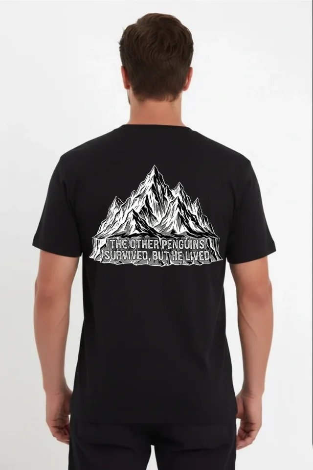 Erkek Nihilist Penguen Temalı Oversize Bisiklet Yaka Tişört – Siyah