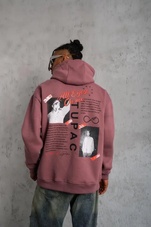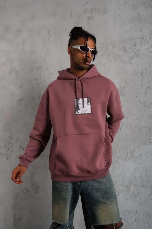 Erkek Ön Arka Baskılı Kapşonlu Sweat – Gül Kurusu