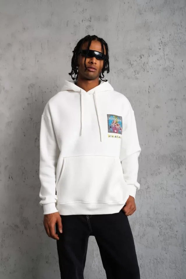 Erkek Patel Six Baskılı Kapüşonlu Sweat – Beyaz