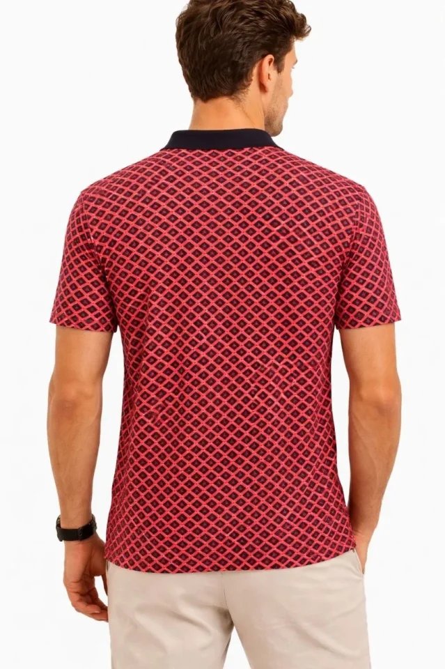 Erkek Pike Kumaş Polo Yaka Desenli Tişört Kısa Kol Yazlık T-Shirt – Kırmızı