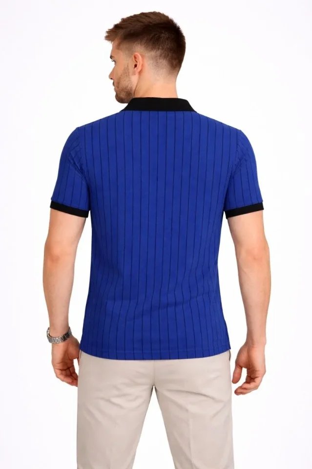 Erkek Polo Yaka Çizgili Tişört Kısa Kol Düğmeli Yazlık T-Shirt – Saks Mavisi