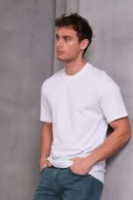 Erkek Ince çizgi Dokulu Kısa Kollu Tişört