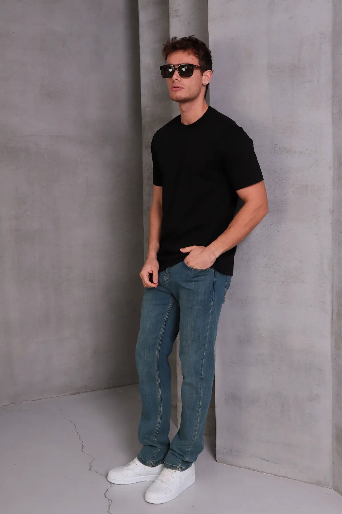 Erkek Relax Fit Bisiklet Yaka %100 Pamuk Rahat Kesim Basic Tişört