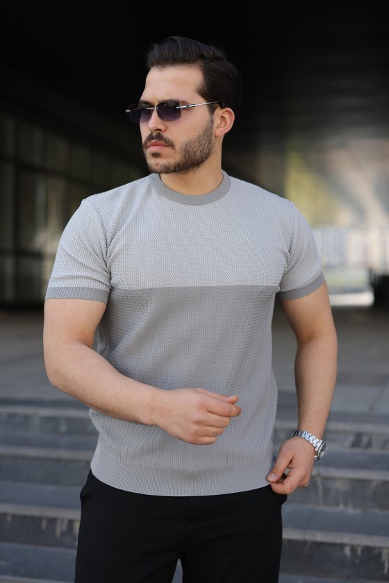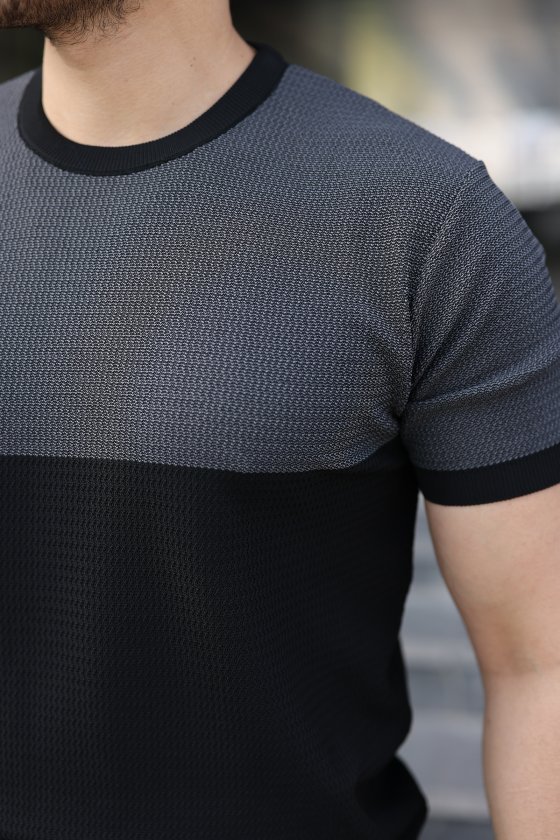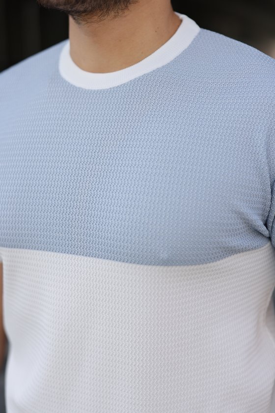 Erkek Renk Bloklu Bisiklet Yaka Kısa Kollu Triko Tişört