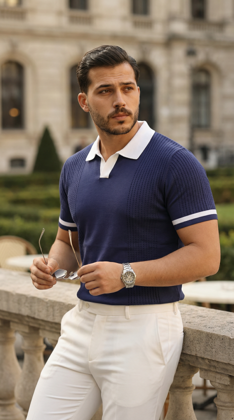 Erkek Hemşire Yaka çift Renk Kısa Kollu Tişört