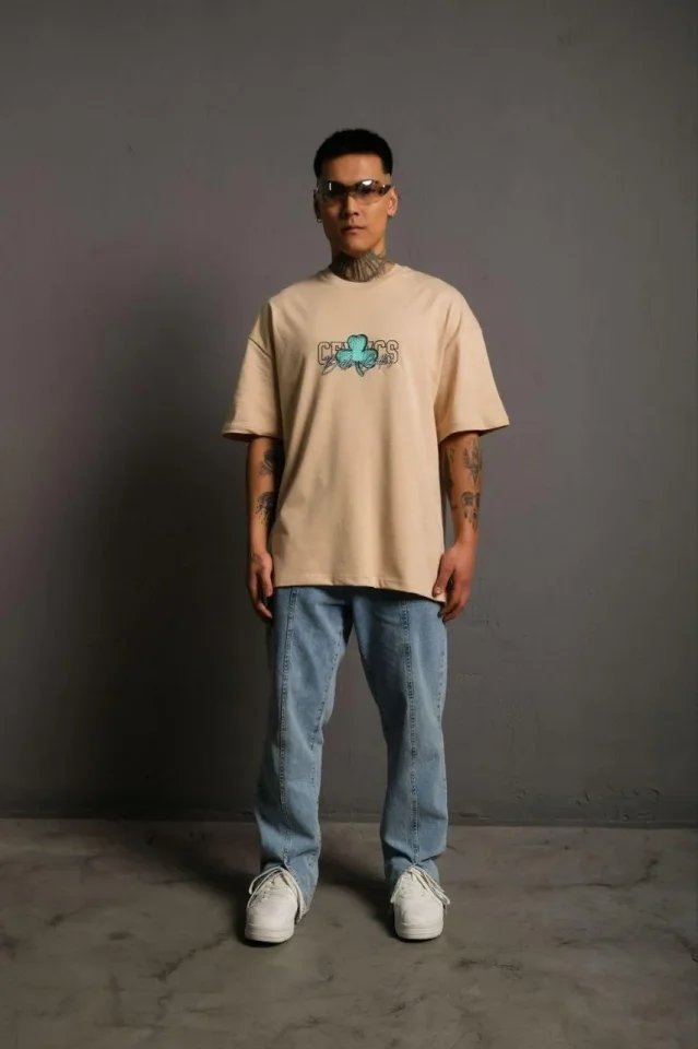 Erkek Sırt Baskılı T-shirt – Bej