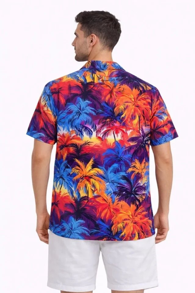 Erkek Tropikal Desenli Kısa Kol Gömlek Rahat Kalıp Yazlık Hawaii Tarz