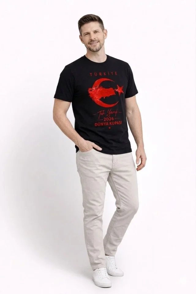 Erkek TÜRKİYE Ay Yıldız Baskılı Taraftar Forma T-Shirt – Siyah