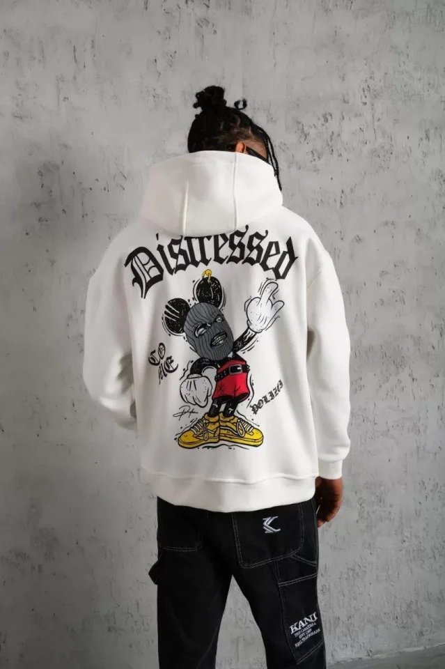 Erkek Üç İplik Baskılı Kapüşonlu Sweat – Beyaz