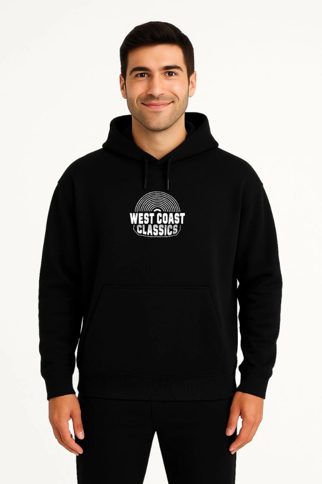 Erkek Üç İplik Kapüşonlu Ön Ve Arka Baskılı SweatShirt Hoodie – Siyah