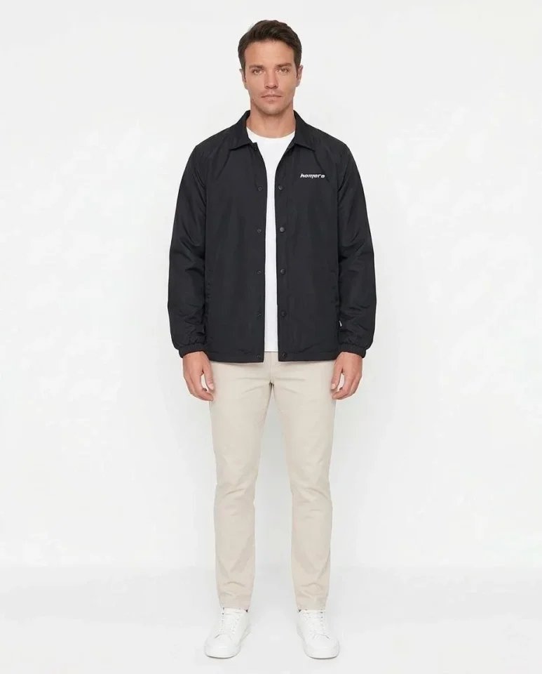 Erkek Yağmur İtici İç Astarlı Çıtçıtlı İç Cepli Dış Cepli Mevsimlik Ceket – Siyah
