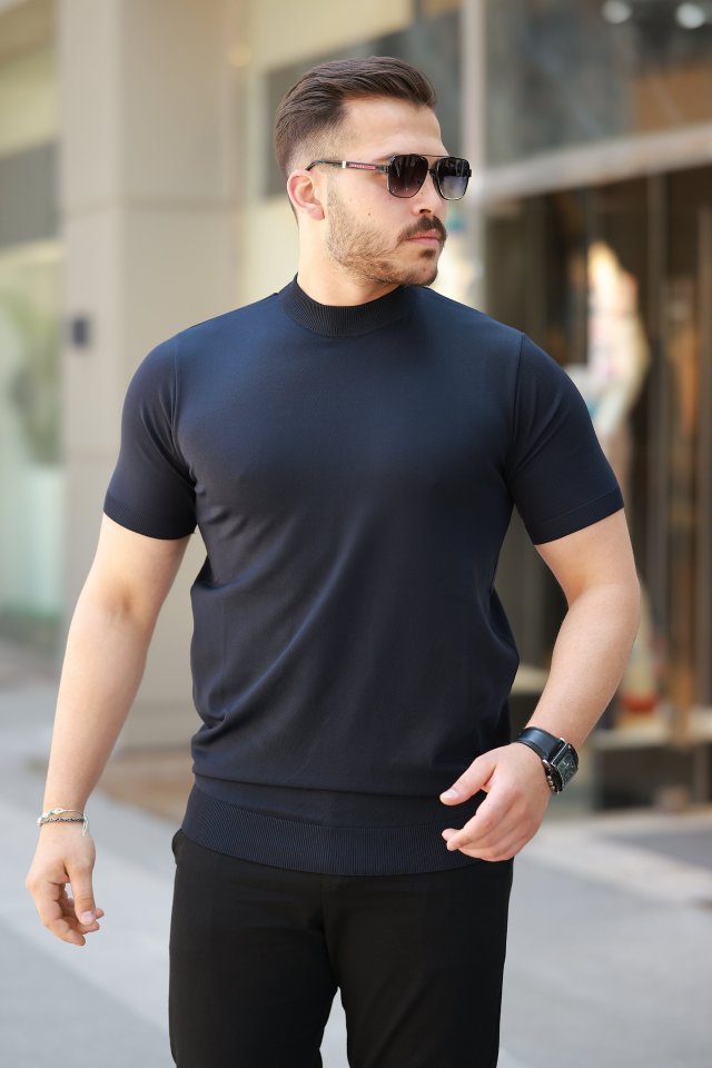 Erkek Yarım Balıkçı Yaka Kısa Kollu Tişört