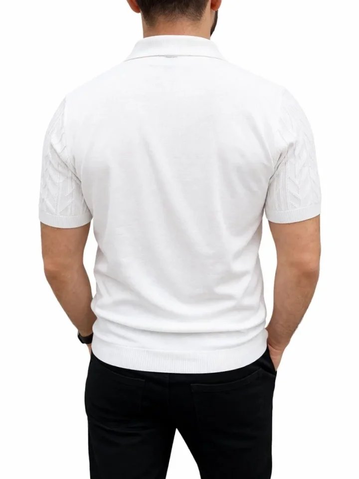 Erkek Yazlık Triko Tişört Kısa Kol Polo Yaka Düğmeli T-Shirt – Beyaz
