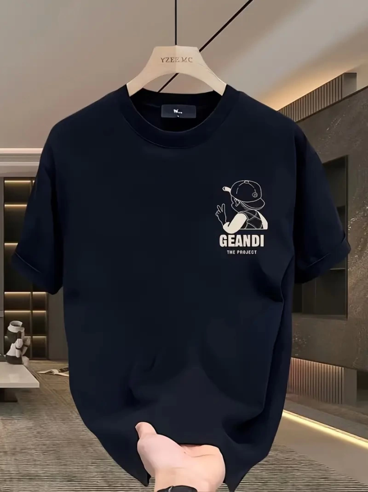 Geniş Kesim Pamuklu Tişört – GANDHI The Project Baskılı, Siyah, Rahat Kesim, Kısa Kollu, Günlük Kıyafet, Her Gün Giyilebilecek Tişört- Siyah