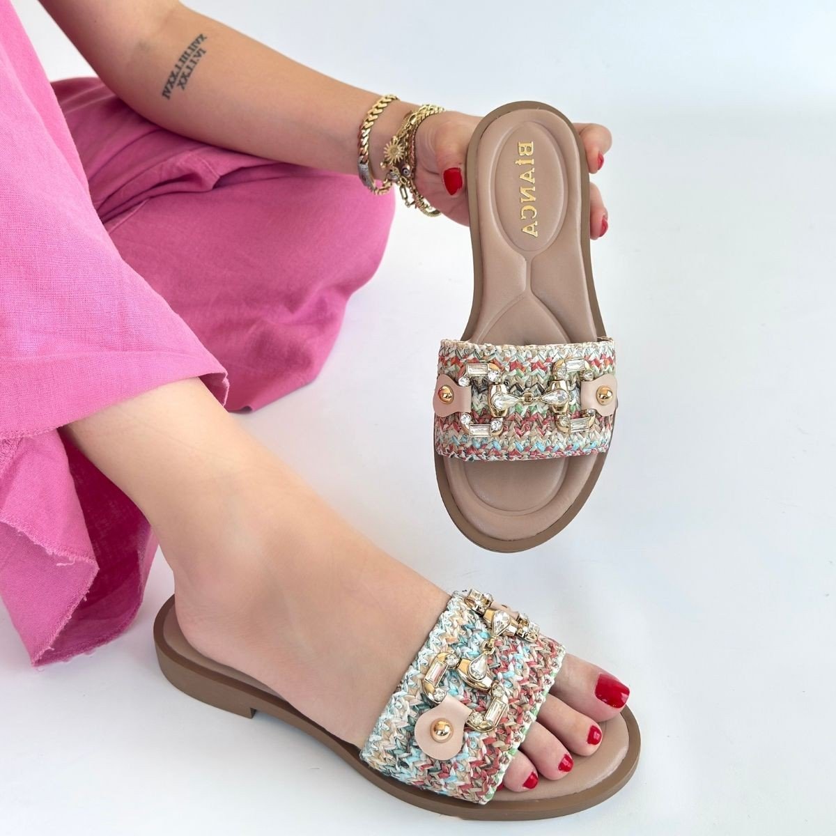 Gonne Renkli Hasır Dokuma Terlik