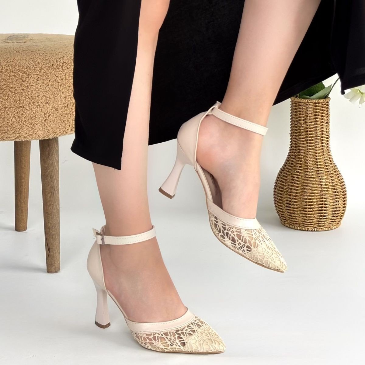 Hejja Bej Cilt Tül Detaylı Topuklu Ayakkabı