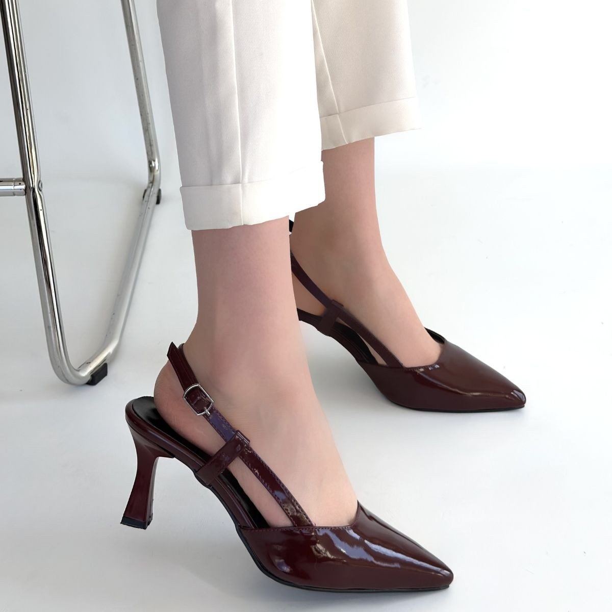 Hoost Bordo Rugan Topuklu Ayakkabı