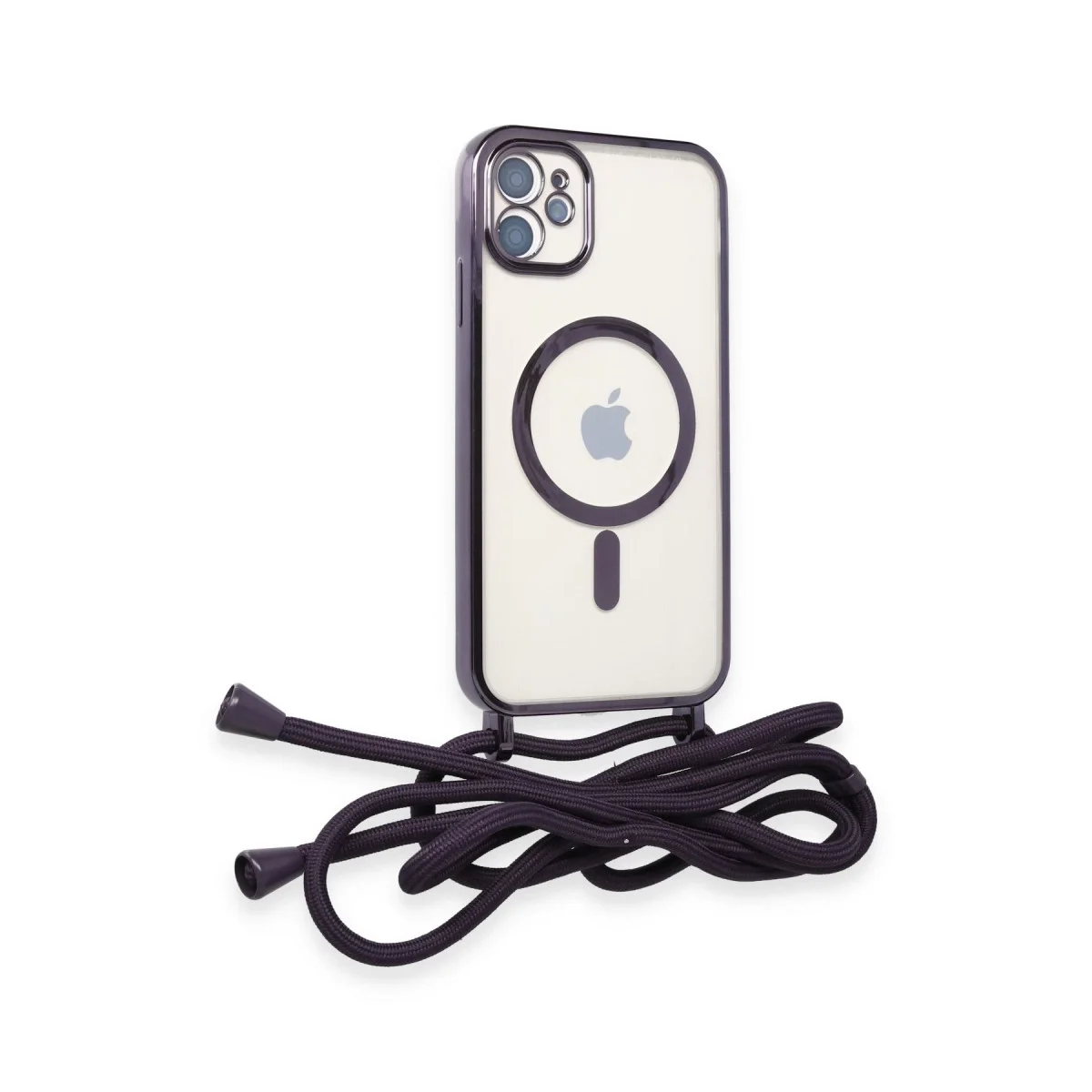 İphone 11 Kılıf Divo Lazer Askılı Magsafe Kapak – Derin Mor