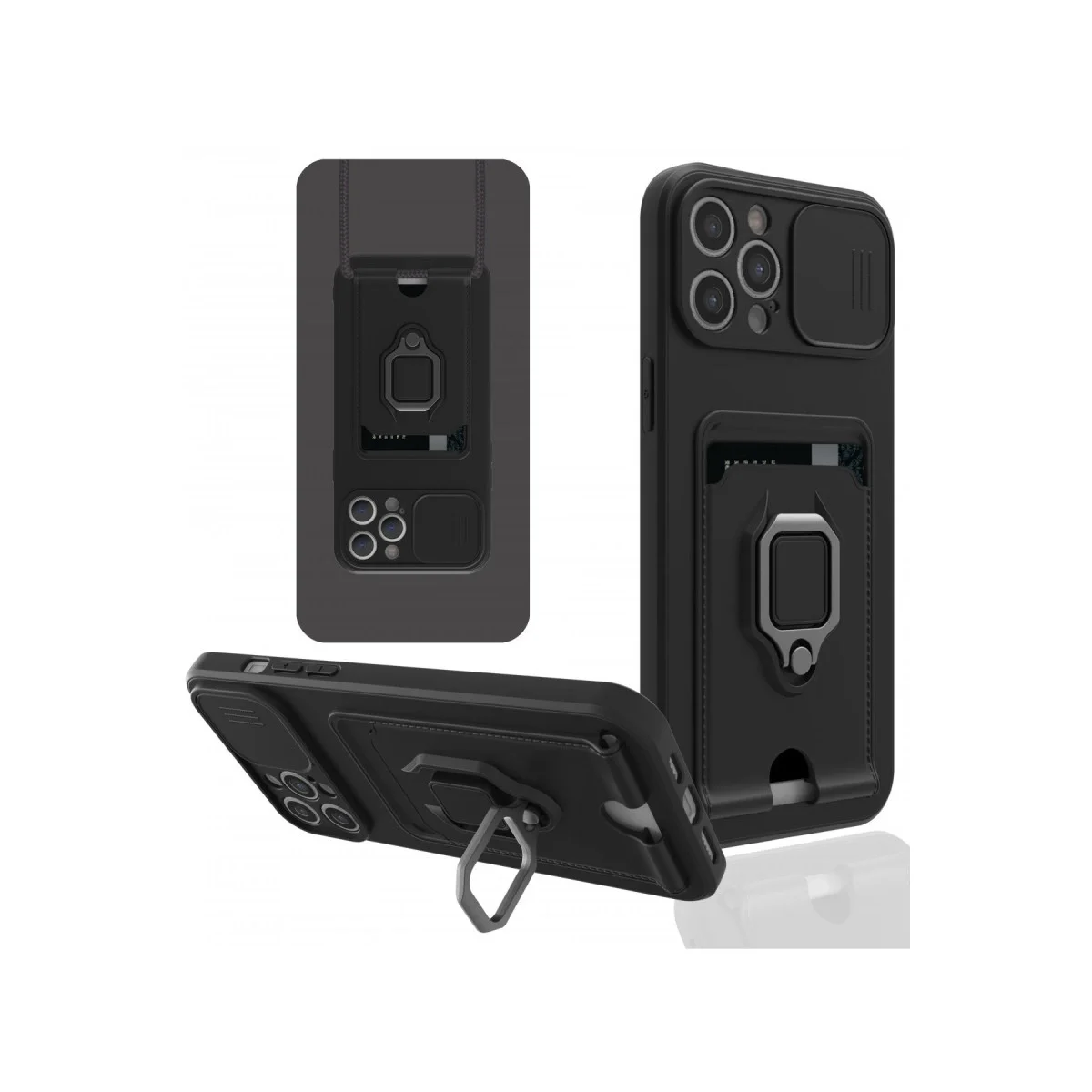 İphone 12 Pro Max Kılıf Zuma Kartvizitli Yüzüklü Silikon – Siyah