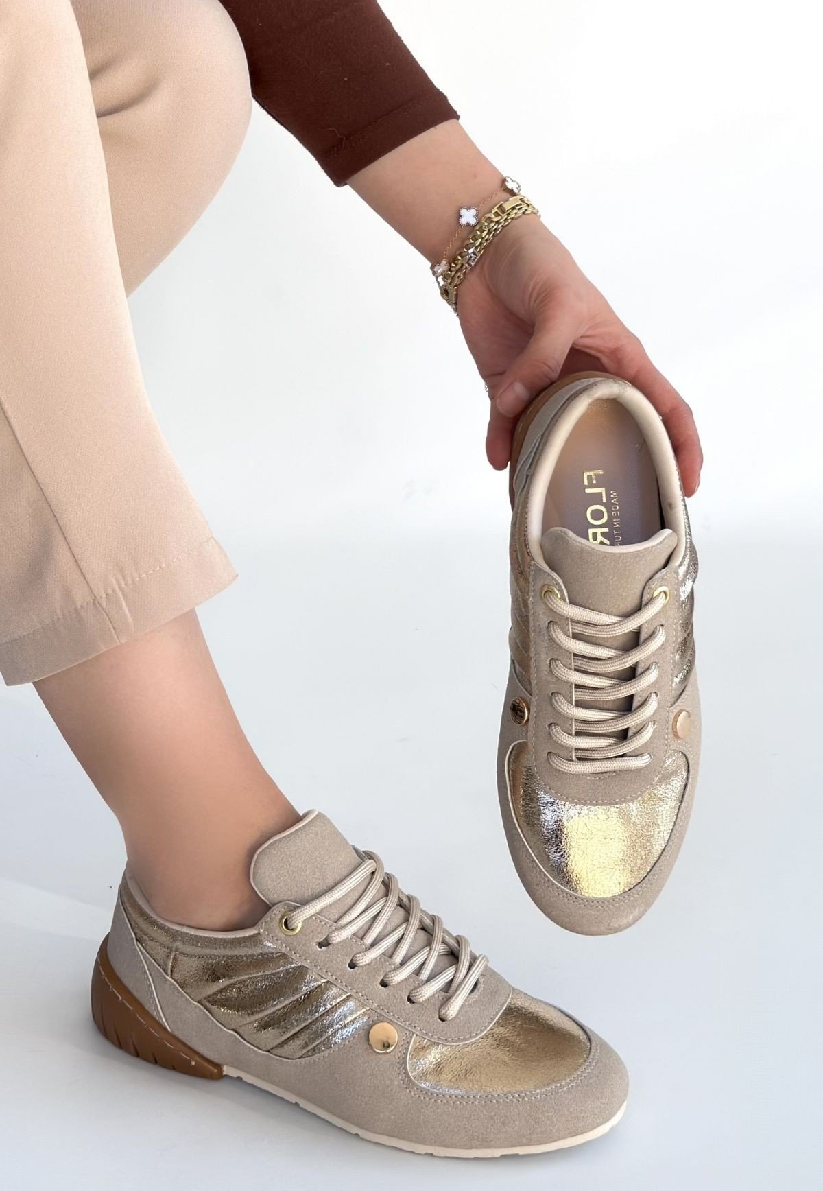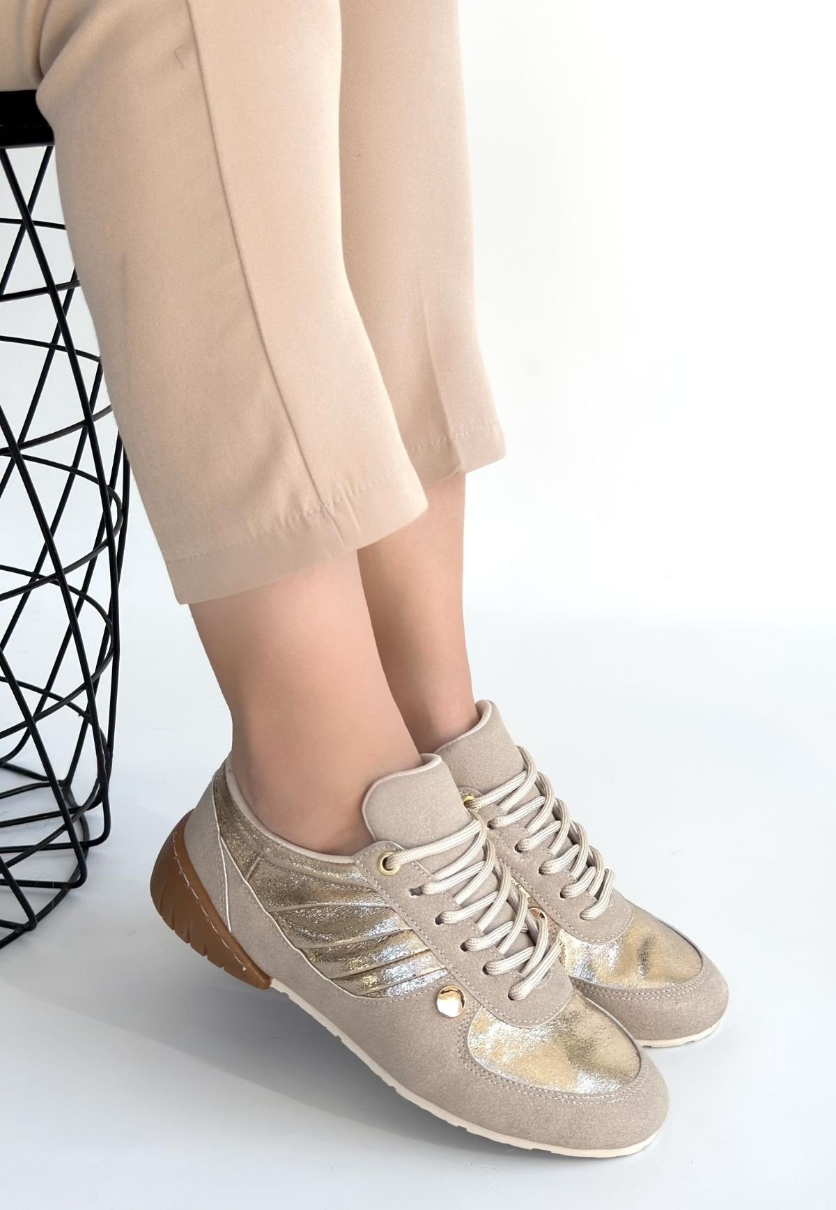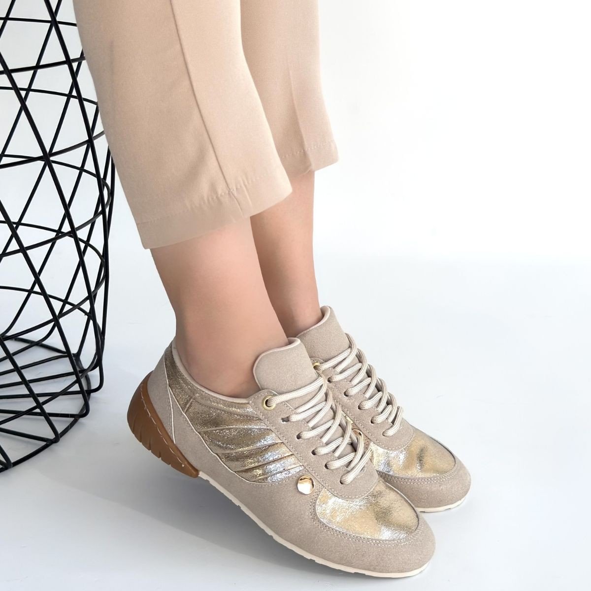 Jawen Bej Nubuk Gold Detaylı Spor Ayakkabı