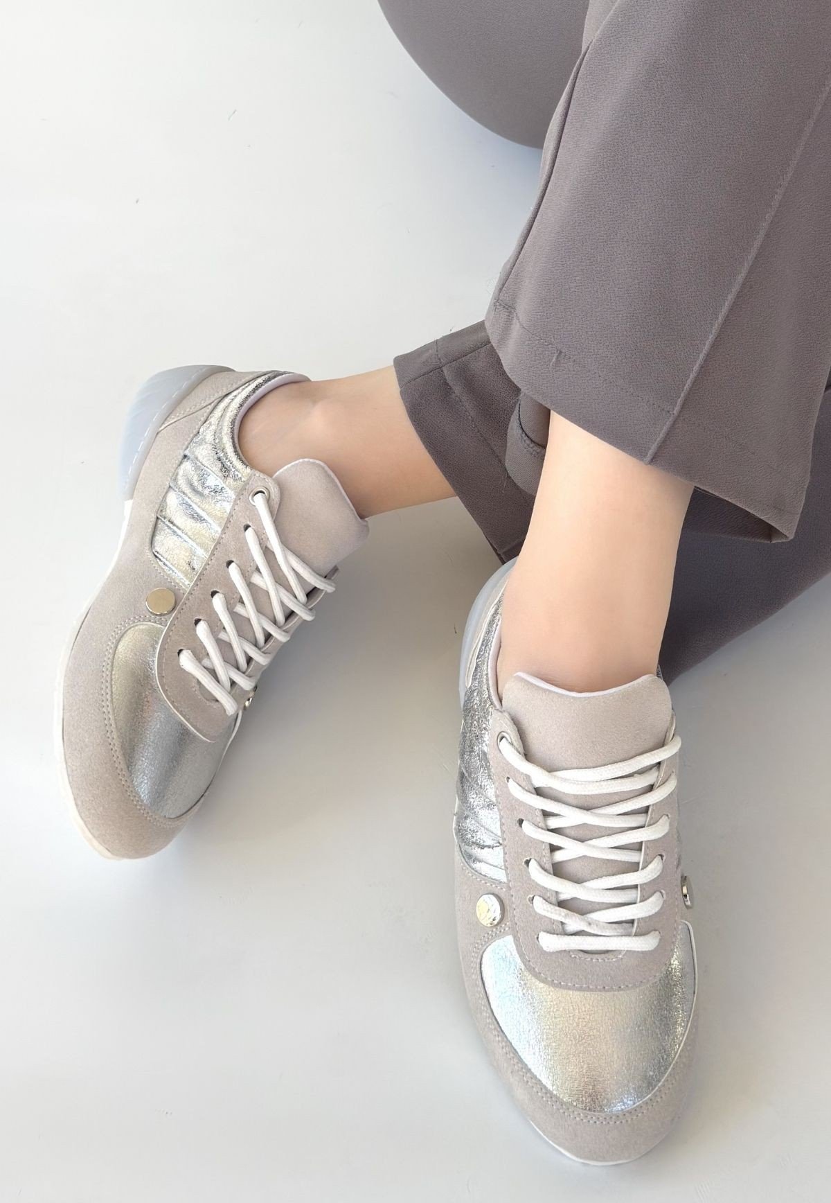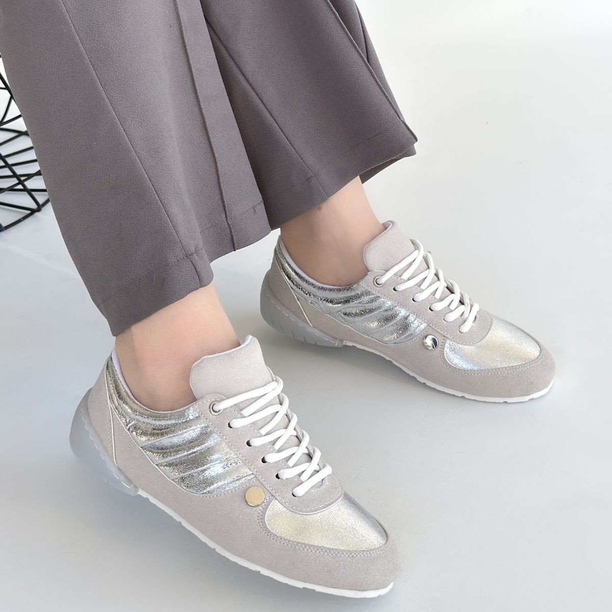 Jawen Gri Nubuk Gümüş Detaylı Spor Ayakkabı