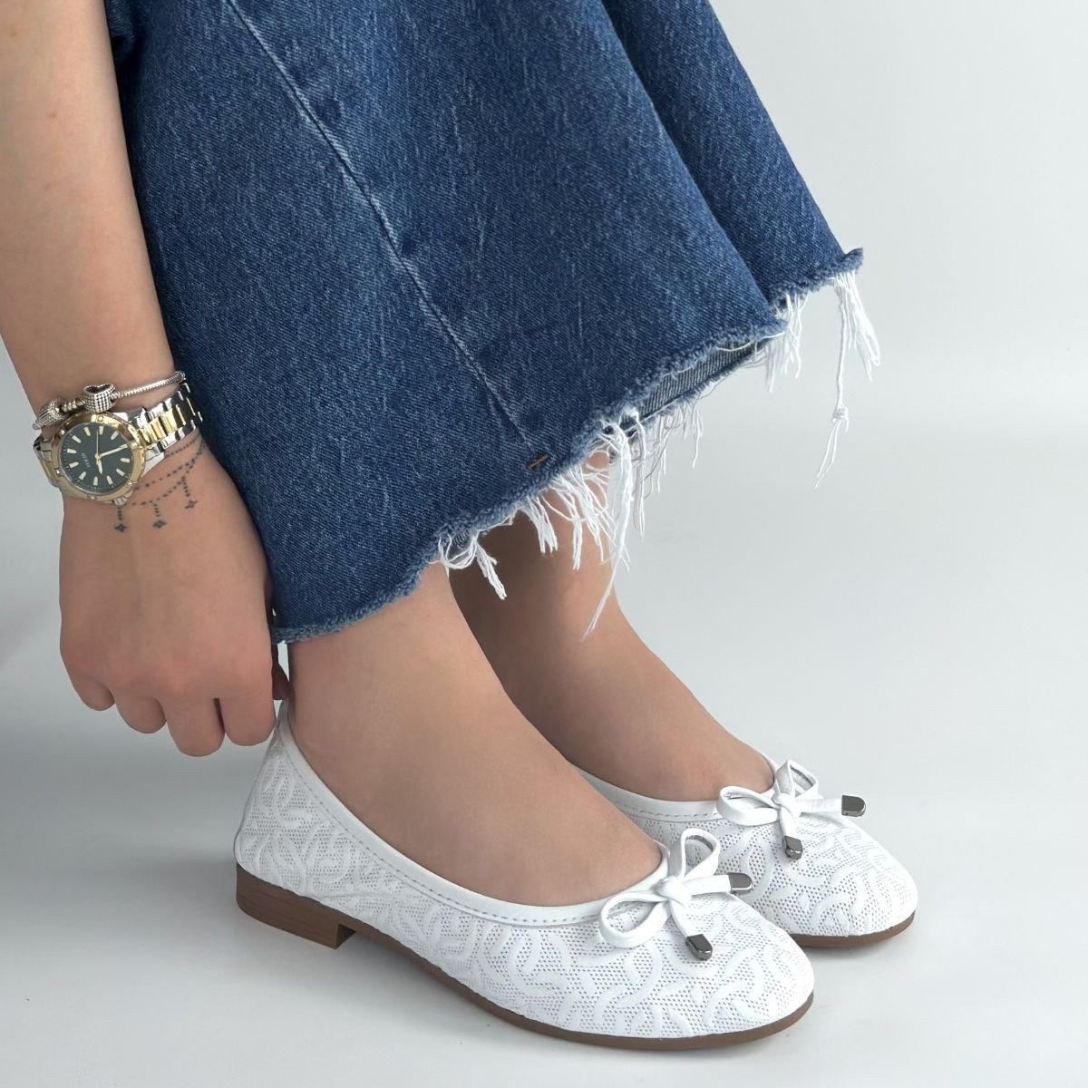 Jnues Beyaz Deri Babet Ayakkabı