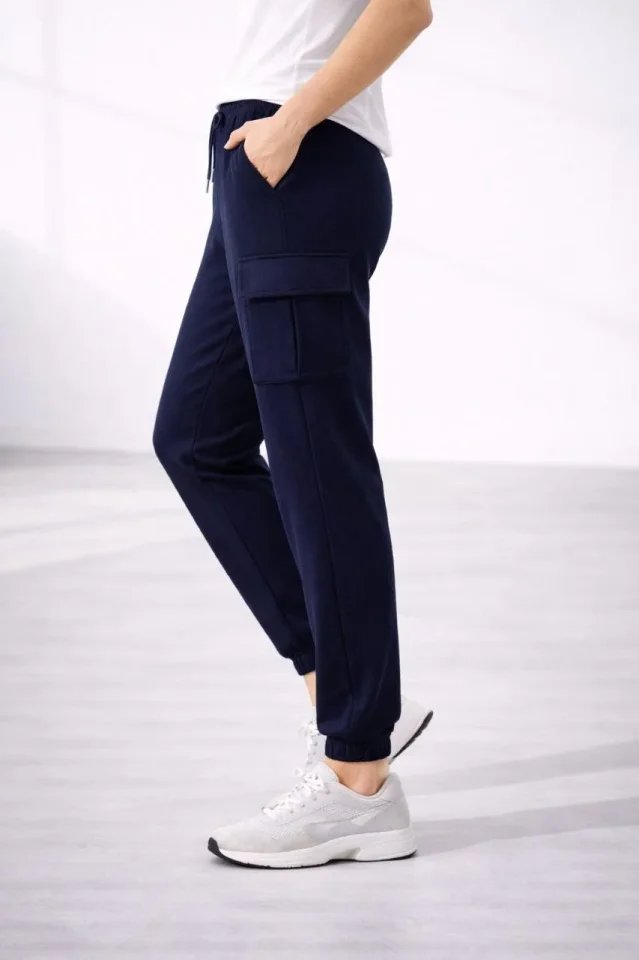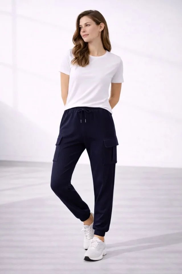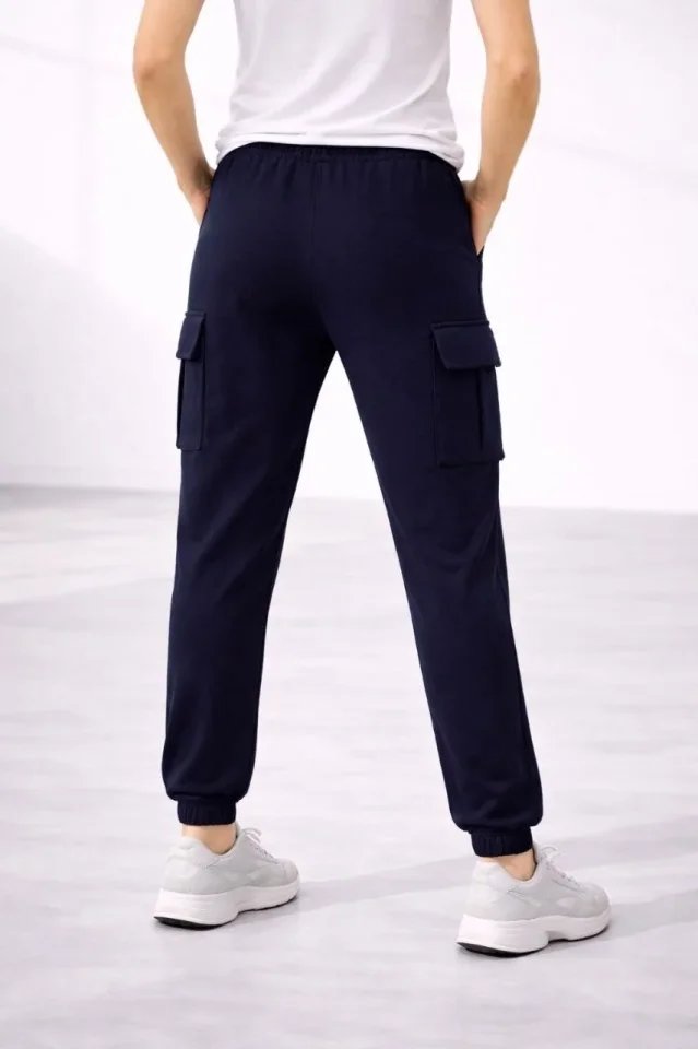 Jogger Eşofman Altı Rahat Kalıp, Kargo Cepli, Lastikli Paça, Günlük Spor Pantolon – Lacivert