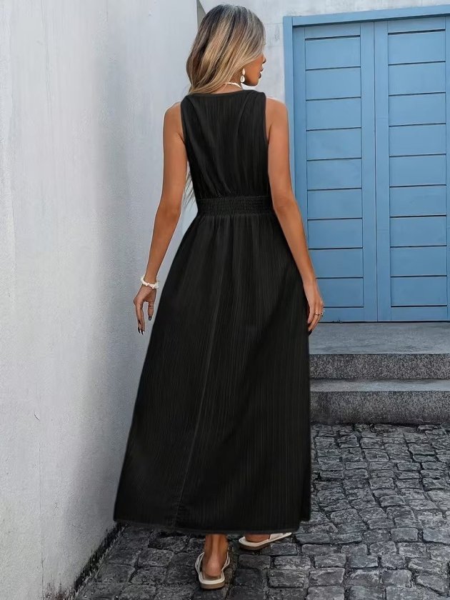 Kadın Kolsuz Boyundan Askılı Desenli Midi Süprem Elbise