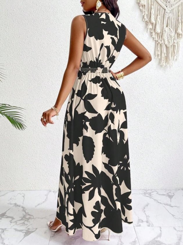 Kadın Askılı Kruvaze Yakalı çiçek Desenli Uzun Süprem Elbise